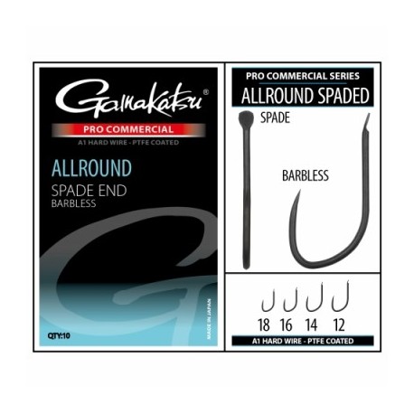 The All Round Spade End is a very universal model based on the Gama 2260 and made from A1 wire . This barbless hook can be used all year round for nearly all type of hookable baits. This makes it the ideal hook for commercial venues with a mixed stock of species.